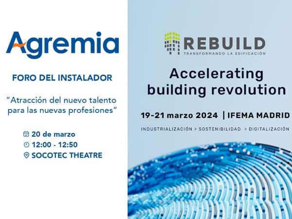 Coincidiendo con la feria Rebuild, que se celebra del 19 al 21 de marzo en IFEMA, en Madrid, Agremia, la Asociación de Empresas del Sector de las Instalaciones y la Energía coorganiza, en el marco del Foro de las Instalaciones, la jornada “Atracción de nuevo talento”, que tendrá lugar el próximo 20 de marzo, a las 12h, en el Auditorio Socotec (Pabellón 7).