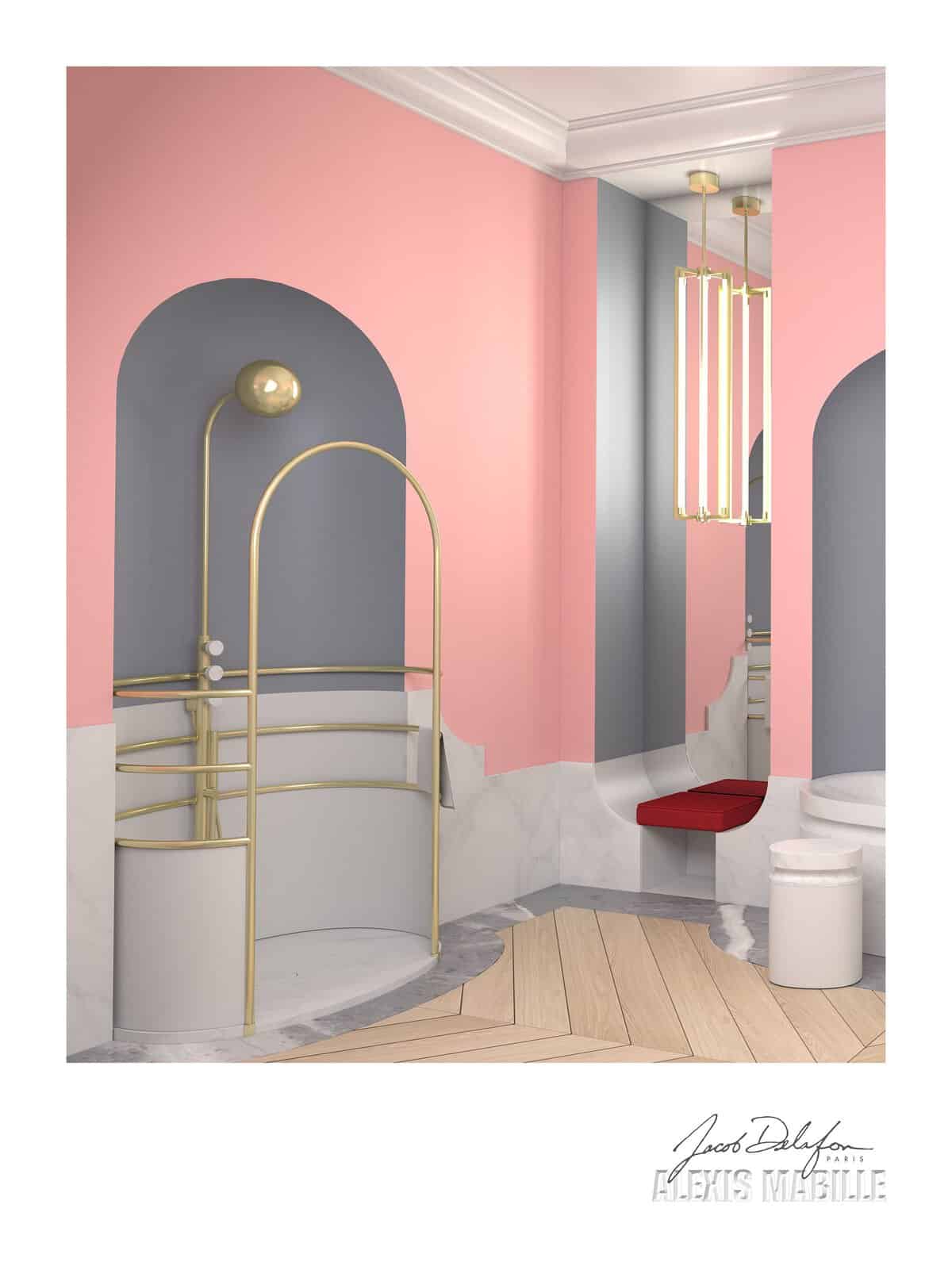 Pascale Delplace, Responsable de Marketing y Comunicación en Jacob Delafon, explica: « Dimos carta blanca a Alexis Mabille, y él realizó un cuarto de baño que mezclaba audacia y espíritu de alta costura lo cual nos atrajo inmediatamente. »
