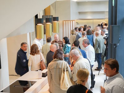 La inauguración contó con la asistencia de cerca de 100 clientes, colaboradores y profesionales del sector de la arquitectura, el diseño, la construcción, marmolistas y tiendas de cocina. Entre los asistentes destacaron el reconocido chef Karlos Arguiñano, su hermana Eva y su hijo Joseba Arguiñano, todos ellos vinculados desde hace años con Cosentino.
