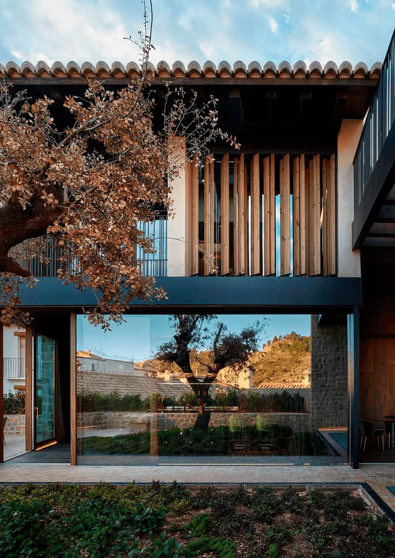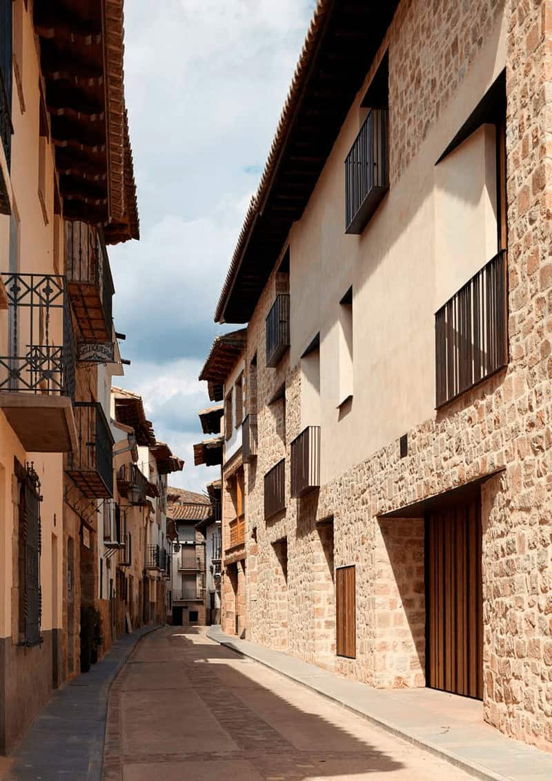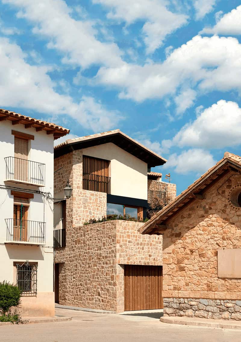 La esencia de este proyecto se basa en una reinterpretación de la casa solanar, la típica casa rural que conforma el casco histórico de Rubielos de Mora y configura el entorno de esta vivienda.