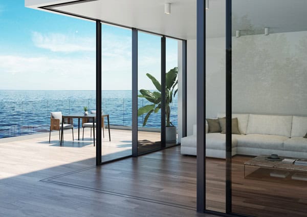 Asimismo, se han incorporado soluciones constructivas avanzadas para satisfacer las demandas de los proyectos más exigentes. Se ofrecen dos opciones de suelo continuo, con pavimento continuo o con perfiles de aluminio pisables, así como un encuentro en esquina a 90º sin montante de marco para crea una transición sin barreras entre el interior y el exterior.