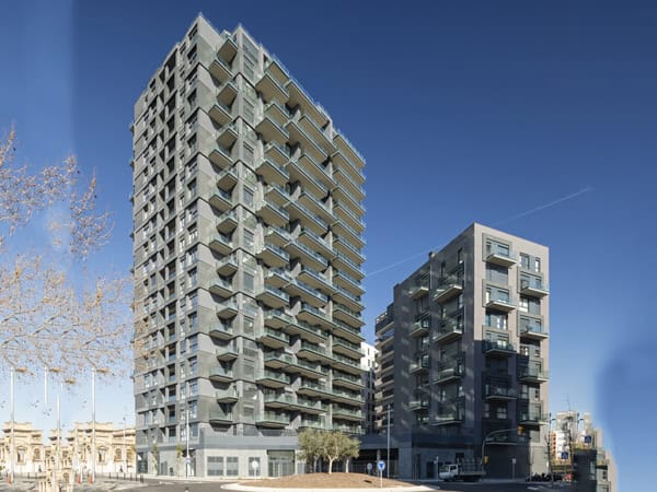 Este innovador proyecto consta de tres edificios que contienen un total de 311 viviendas. Pero lo que hace que esta obra arquitectónica llame la atención son las terrazas y los ventanales con forma de cubo, en la fachada. Con su ingeniosa disposición de huecos y voladizos, se logra un efecto visual inconfundible.