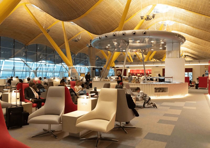 Este espacio VIP, diseñado para Iberia, y que continúa con la línea de modernización de la aerolínea, tiene una superficie de 2.000 metros cuadros y 455 asientos. Esto supone una ampliación de casi un centenar respecto a su capacidad anterior.