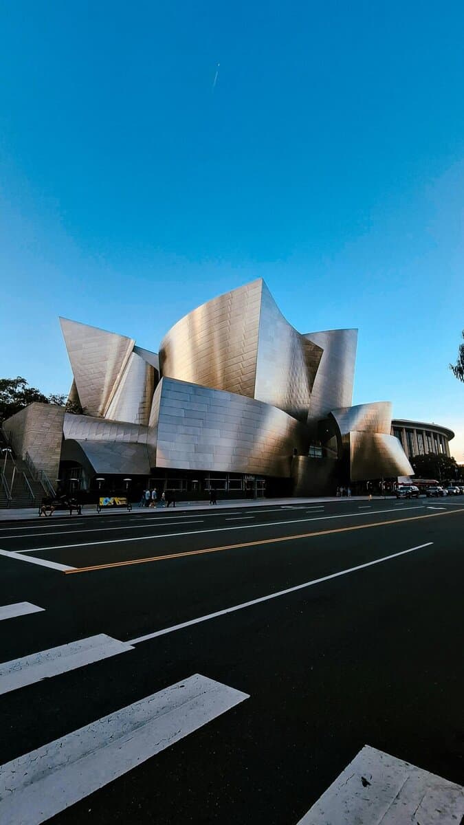 Inaugurado en 2003 y diseñado por Frank Gehry, el Walt Disney Concert Hall parece moverse al ritmo de la música que alberga. Sus curvas de acero inoxidable generan un efecto de dinamismo que cambia según la luz del día, haciendo que el edificio parezca “bailar” entre reflejos y sombras.