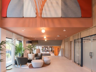 Alfaro-Manrique Atelier lideró el diseño integral del concepto, abarcando desde las zonas comunes hasta los alojamientos, señalética y espacios exteriores, asegurando una coherencia global. Los espacios comunes, cruciales en una tipología como la de Be Casa, están diseñados para equilibrar escalas, desde el amplio hall de recepción hasta áreas íntimas como los espacios de coworking, salón social, gimnasio y cine, todos articulados en torno a un pasillo principal abierto que fomenta la interacción social.