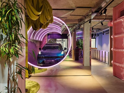 El Lynk & Co Club Madrid trasciende el concepto tradicional de concesionario. Se trata de un espacio abierto y versátil donde los usuarios pueden trabajar, comprar, socializar, asistir a eventos e incluso probar el modelo 01 de la marca. El diseño, inspirado en las siete disciplinas artísticas y en iconos de la ciudad de Madrid, ofrece una experiencia divertida e irónica en cada rincón.