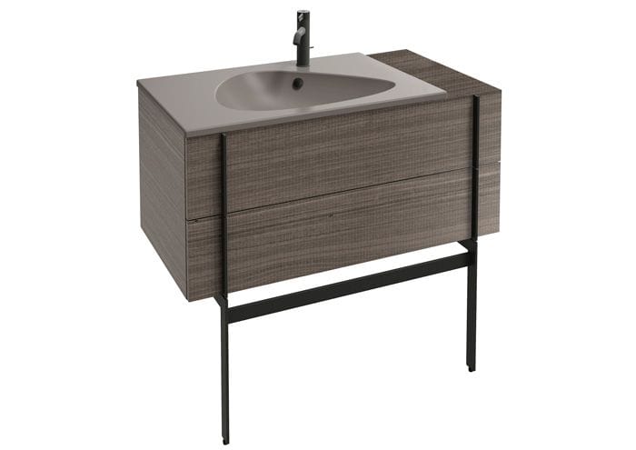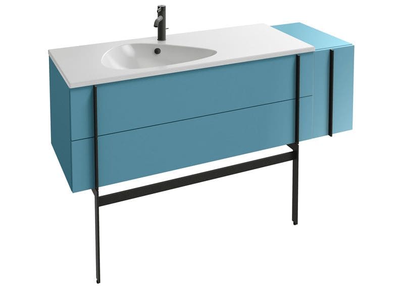 Sus lavabos planos fabricados en cerámica, con opción a elegir entre 3 acabados diferentes (Blanco Brillante, Cachemir Satén y Gris Tormenta Satén), se integran a la perfección con los muebles gracias a un diseño en el que predominan ángulos suaves y líneas rectas junto a una playa extensa ideal para colocar algunos productos de uso diario. Disponible en 3 tamaños diferentes (121 cm, 101 cm, 81 cm).