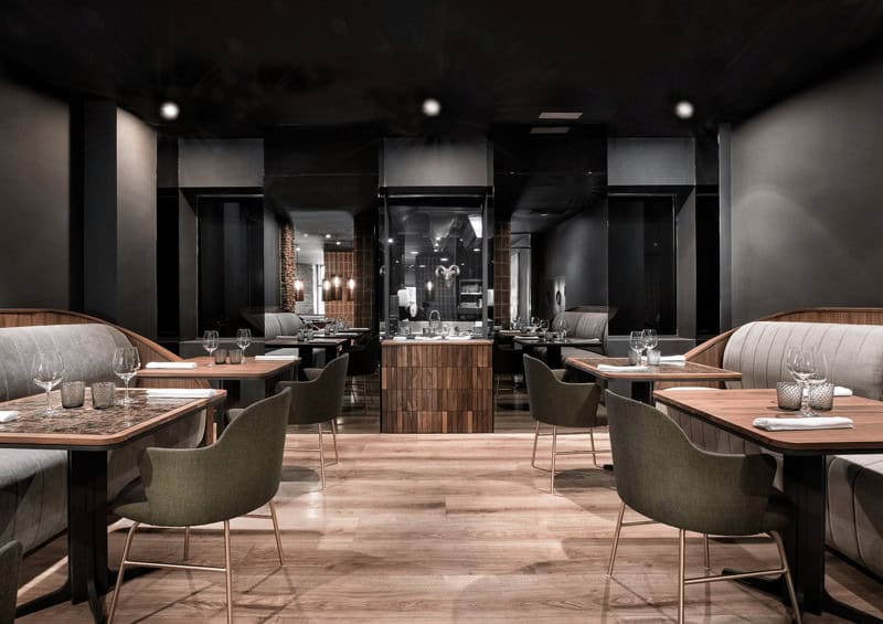 El reconocido chef Javier Aranda nos encargó la intervención en uno de sus restaurantes premiados con una estrella Michelin, La Cabra. No era una intervención evidente porque tenía interés en conservar ciertas partes y elementos que había incorporado en intervenciones recientes, pero sin embargo quería cambiar radicalmente el concepto, el funcionamiento y la imagen del restaurante. Sin alejarse de la esencia distinguida que le había permitido acceder a ser uno de los restaurantes de la Guía, pero a su vez buscando crear un ambiente más dinámico y divertido.