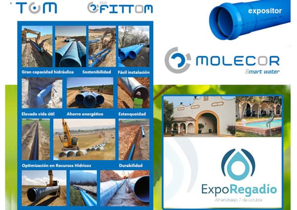 Molecor mostrará en su espacio las tuberías TOM® y los accesorios ecoFITTOM® de PVC Orientado una de las mejores alternativas para las redes de regadío, por sus propiedades físico-mecánicas y químicas que aportan una gran optimización y la reducción de los costes de explotación de una red hidráulica. Una gama de productos de calidad, eficientes y comprometidos con el medio ambiente, gracias a su larga  durabilidad.