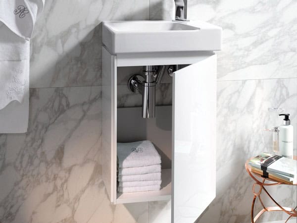 El mobiliario del baño juega un papel esencial. Una opción ideal es elegir alternativas suspendidas como Xeno2, una serie de muebles de lavabos de líneas muy marcadas, sin tiradores y con iluminación integrada.