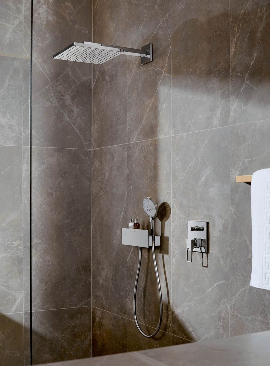 Cuadrado, elegante, expresivo: el diseño limpio de líneas rectas de la nueva gama de duchas Raindance E de hansgrohe lo convertirán en el elemento central de cualquier baño moderno. En colaboración con los diseñadores de Phoenix Design, la marca ha creado duchas fijas y showerpipes que combinan superficies amplias y materiales de calidad con una gestión avanzada del agua.