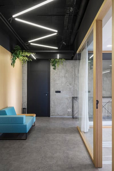 En la reforma de las oficinas, se busca lograr una imagen atemporal mediante el uso de materiales como la madera de roble, la pintura negra y el mortero visto, los cuales adquieren coherencia con los colores corporativos. En los espacios más reducidos, se proyectan techos blancos fonoabsorbentes para controlar el confort acústico y asegurar una adecuada iluminación natural, contribuyendo así a la creación de un entorno de trabajo armonioso y funcional.
