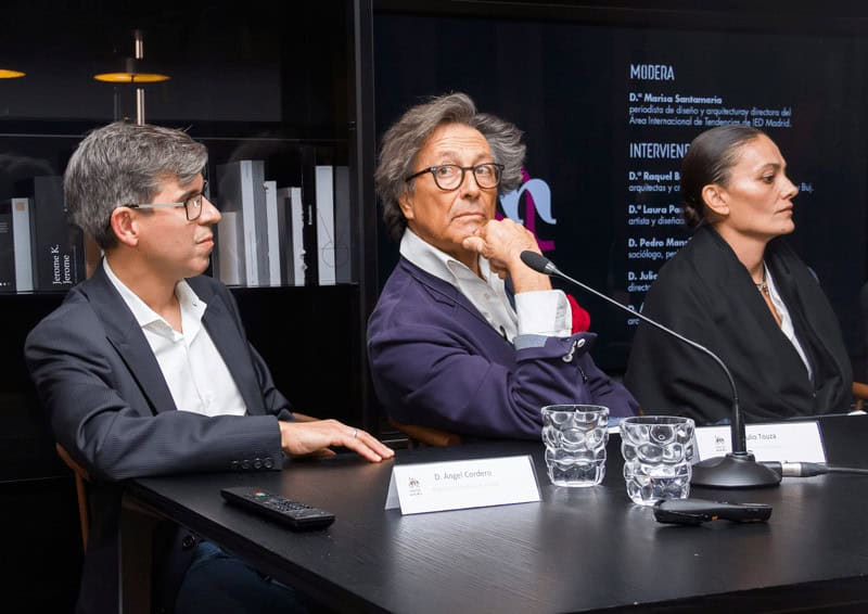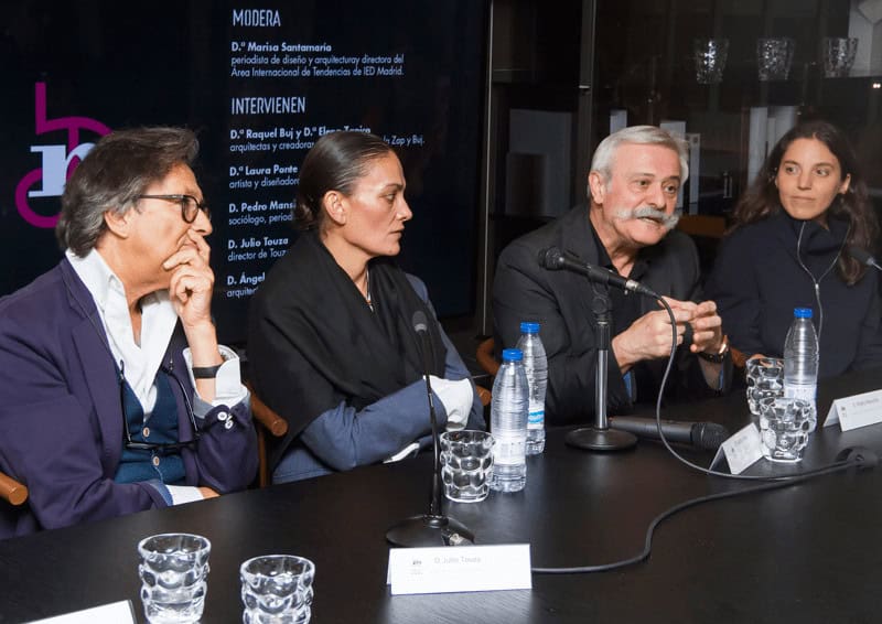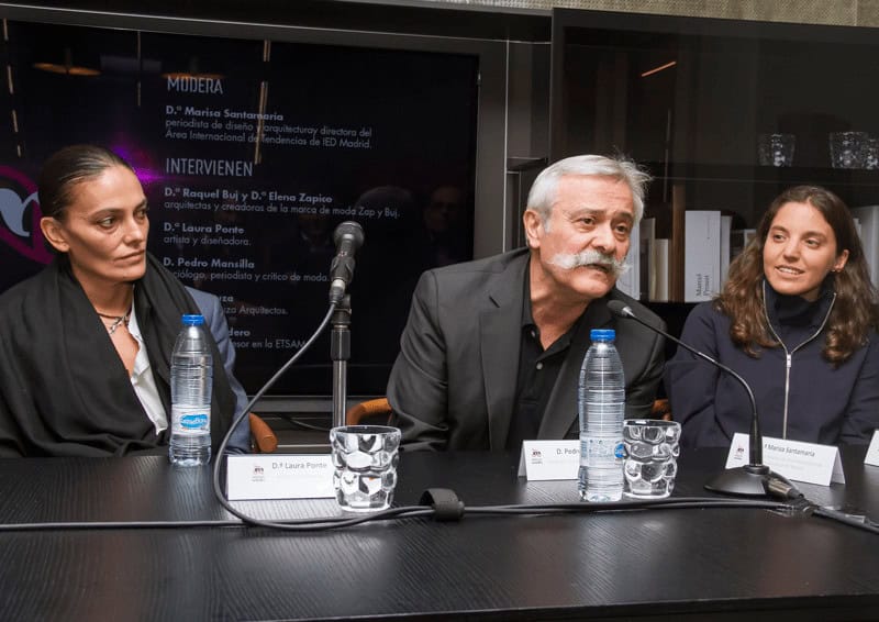 El corolario ha sido la mesa redonda multidisciplinar Relación simbiótica entre Arquitectura y Moda, moderada y dinamizada brillantemente por Marisa Santamaría, directora del Área Internacional de Tendencias del IED Madrid y periodista especializada en diseño y arquitectura. En ella han participado los arquitectos Julio Touza y Ángel Cordero, así como las diseñadoras Laura Ponte y las arquitectas y creadoras de la firma de diseño Zap & Buj, Raquel Buj y Elena Tapico, además del sociólogo, periodista y crítico de moda Pedro Mansilla.